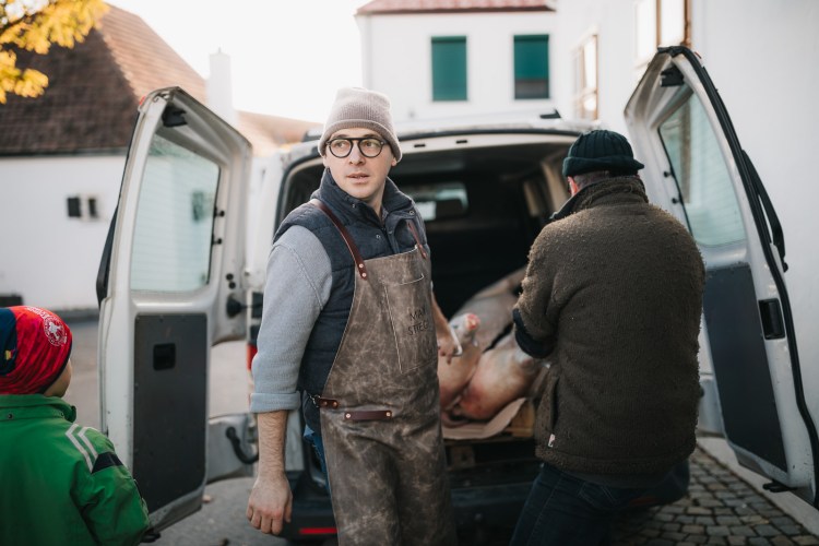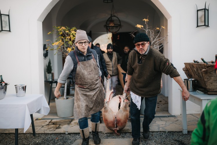 Seit einigen Jahren erweckt Max den traditionellen Sautanz wieder zum Leben. An jedem Samstag im Spätherbst und Winter wird wie früher auf den burgenländischen Höfen eine Sau direkt vor Ort geschlachtet, entborstet, ausgenommen und im Hof aufs sogenannte „Sauraimm“ gehängt. Ein althergebrachtes Spektakel, das Vegetariern unter die Haut geht, Fleischesser fasziniert und alle zum Nachdenken anregt. Denn im Laufe des Tages findet definitiv jedes Teil des Schweins sein Gericht: Hirn mit Ei, frische Innereien, Kesselfleisch, Blunzn, gedünstete Schweinerüssel usw. Erst gegen Mittag kommen die Teile auf den Teller, die jeder kennt, z.B. der Braten mit Kren, gegen Nachmittag wird gewurstet und nach einigen Gläsern Burgenland-Wein stürzen sich am Abend alle auf knusprige Grammeln mit Knoblauch und Majoran. Dazu wird aufgespielt und noch mehr getrunken.